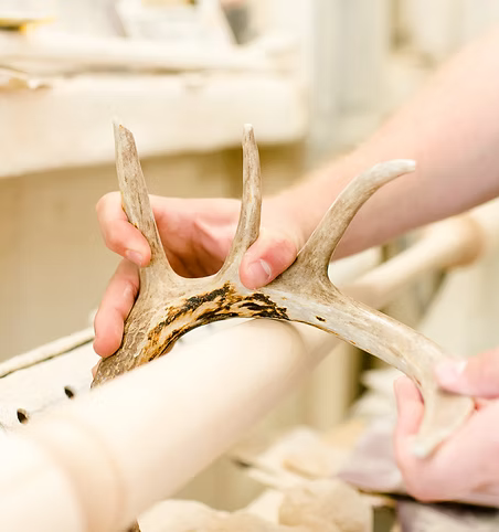 The bat then moves to a smaller lathe for our unique deer antler hardening process and sanding. The deer antler is an extremely hard item, allowing the outer surface of the wood bat to compress, which creates a very hard hitting surface. We believe this part is very important because we want our customers to have the hardest bat in the game.Â