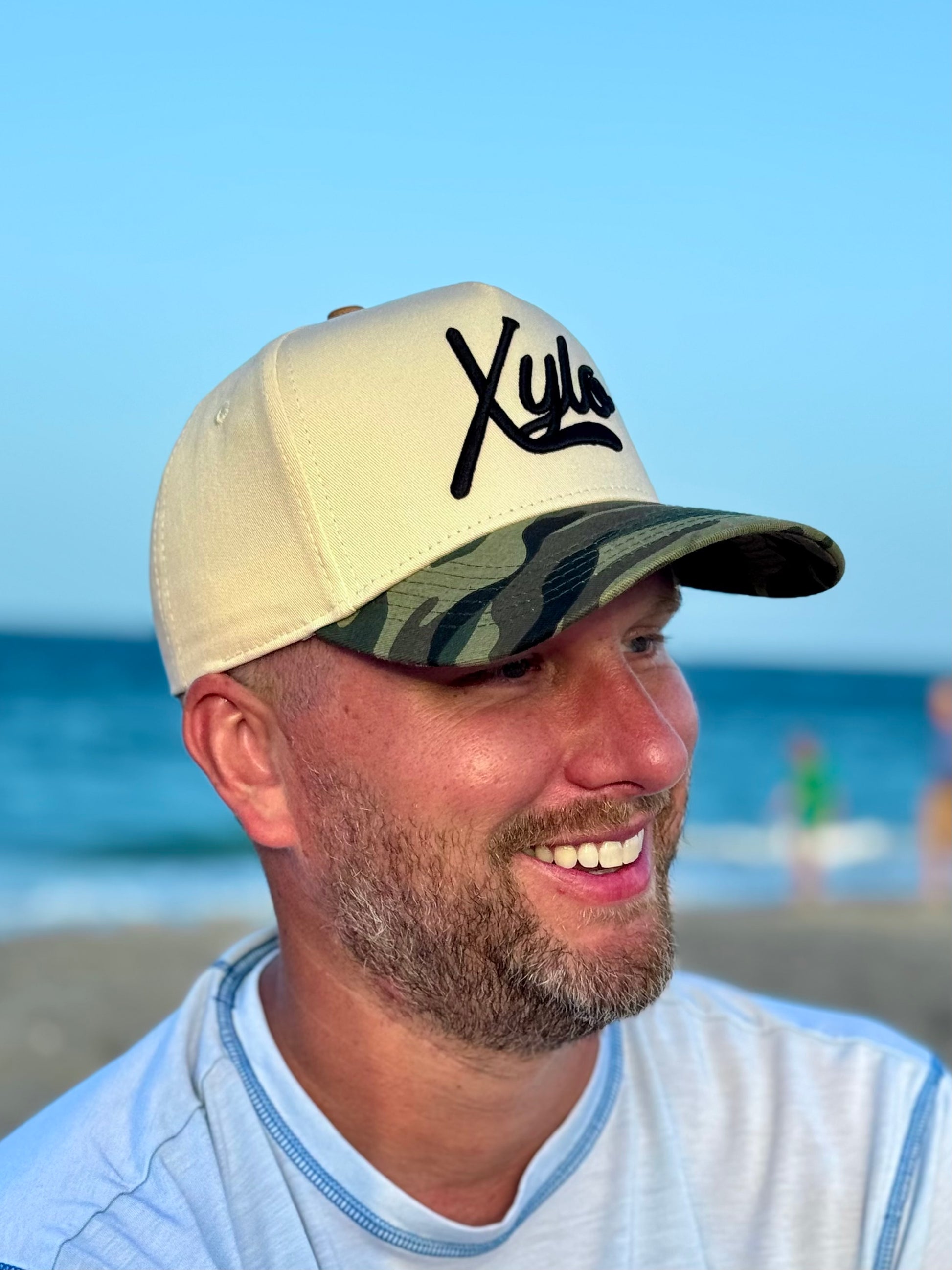 This snapback features a camo bill, a clean off-white crown, and the iconic black Xylo logo front and center—built for those who like their style with a little edge.